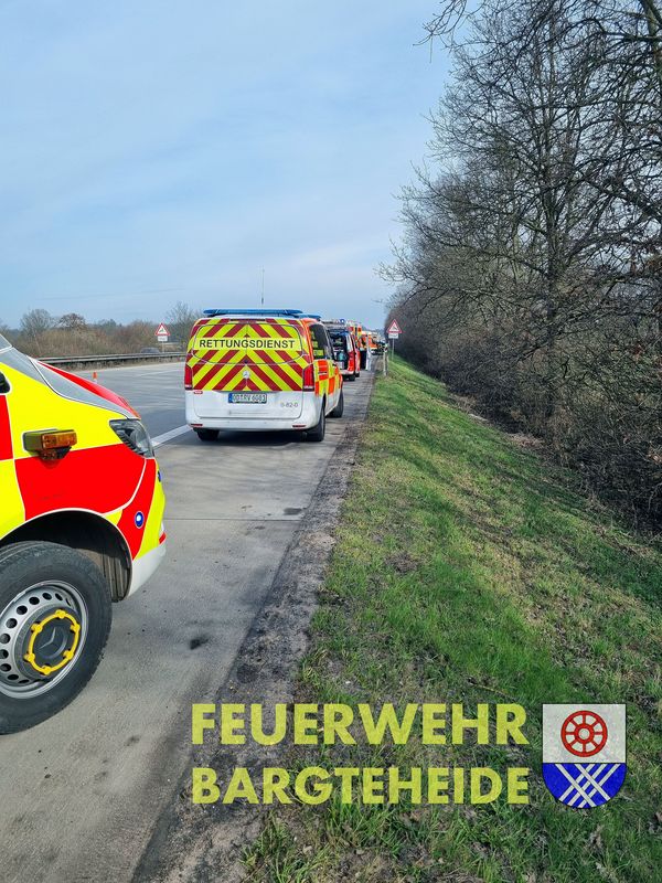 Rettungsfahrzeuge auf dem Standstreifen der BAB A1.