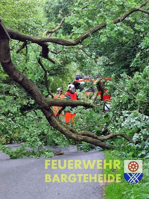 Vermutlich bedingt durch "Trockenbruch" brach ein starker Eichenast (ca. 40 cm dick) ab und versperrte den Glindfelder Weg.
