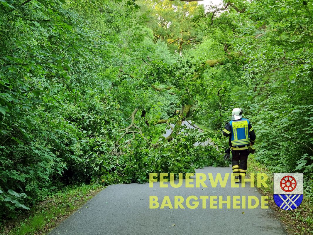 Vermutlich bedingt durch "Trockenbruch" brach ein starker Eichenast (ca. 40 cm dick) ab und versperrte den Glindfelder Weg.