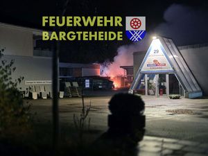 Es brannte im rückwärtigen Teil eines Autohofes, das Feuer griff auf ein benachbartes Firmengelände über.
