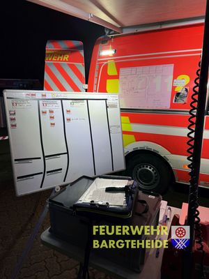 Die eingesetzten Atemschutzgeräteträger (alleine 10 Kameradinnen und Kameraden der FF Bargteheide) konnten sich nach ihren Löscharbeiten an der "DEKON-Stelle" umziehen, die verschmutzten Einsatzanzüge werden einer Reinigung zugeführt. Damit wird die Verschleppung von Brandschmutz minimiert.