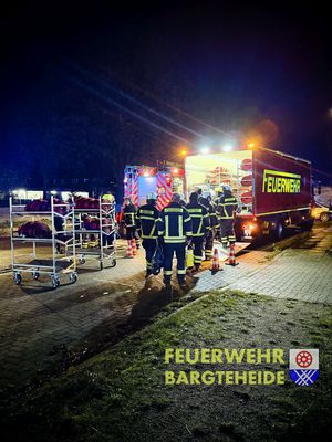 Von der FF Bargteheide wurden 2 C-Strahlrohre für die Brandbekämpfung eingesetzt, die FF Elmenhorst übernahm einen weiteren Brandabschnitt auf dem benachbarten Firmengelände. Dort wurden ebenfalls 2 C-Strahlrohre unter Atemschutz eingesetzt. Einige Gasflaschen, die im Gebäude gefunden wurden, mussten mit Wasser einige Zeit gekühlt werden.