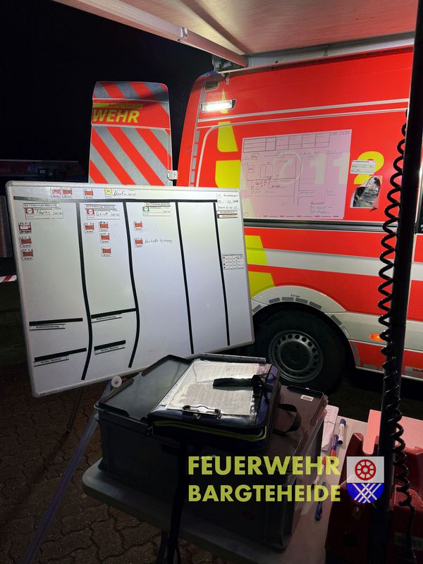Die Feuerwehrtechnische Zentrale aus Nütschau befand sich ebenfalls an der Einsatzstelle, um verschmutzte Schläuche, gebrauchte Atemschutzmasken sowie Atemluftflaschen zu tauschen. Damit sind die Wehren wieder Einsatzbereit.