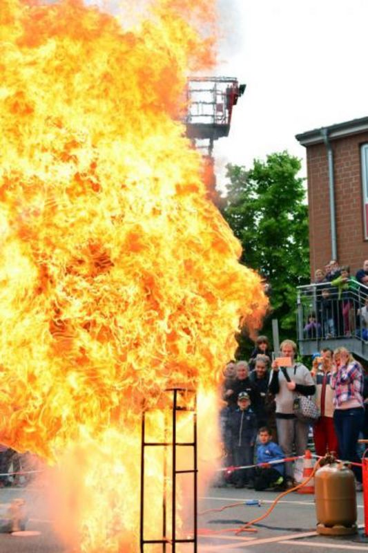 Auch die berüchtigte Fettexplosion war zu sehen – die Ausbilder der Brandschutzerziehung wiesen im Vorwege oftmals darauf hin, bei einem Fettbrand kein Wasser zum Löschen zu nutzen. Richtig ist: Deckel drauf, Herd aus, abwarten, sicherheitshalber die Feuerwehr rufen.