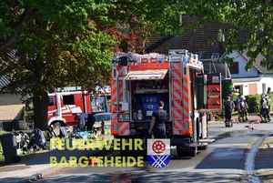 Wir brachten die Drehleiter für die Brandbekämpfung in Stellung und ließen für die FF Bargteheide um 13:52 Uhr den Vollalarm auslösen. Damit rückten weitere Einsatzkräfte nach, um 13:58 Uhr erfolgte die Alarmierung der Führungsgruppe Amt zur Besetzung des Einsatzleitwagens.