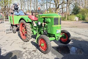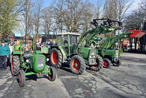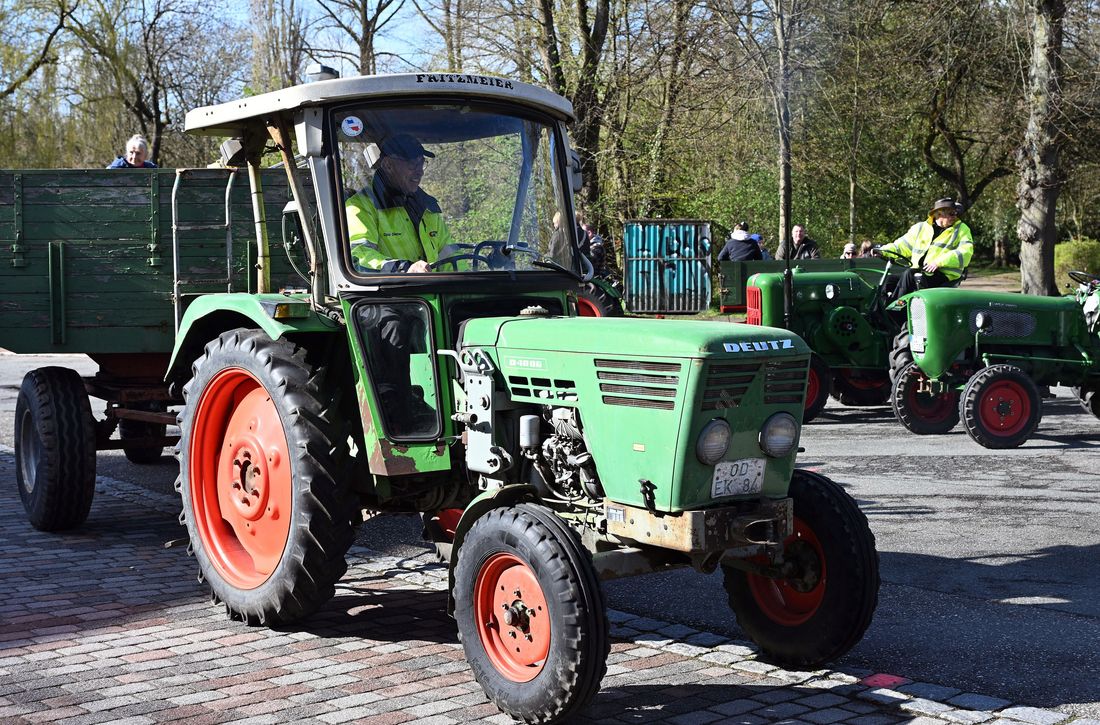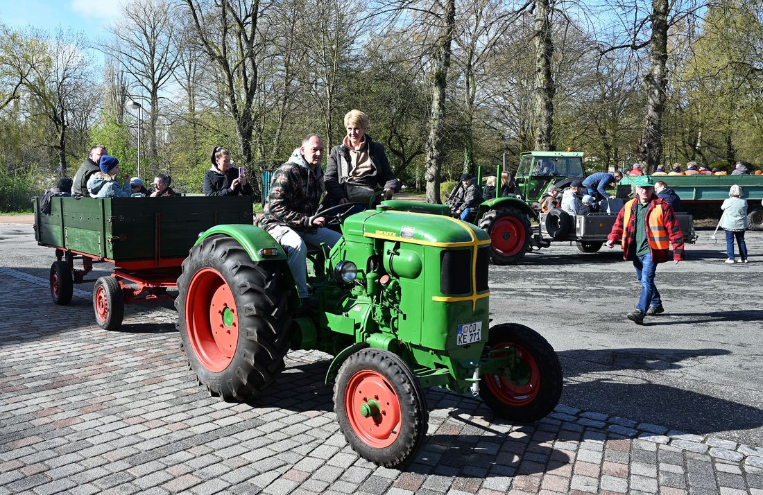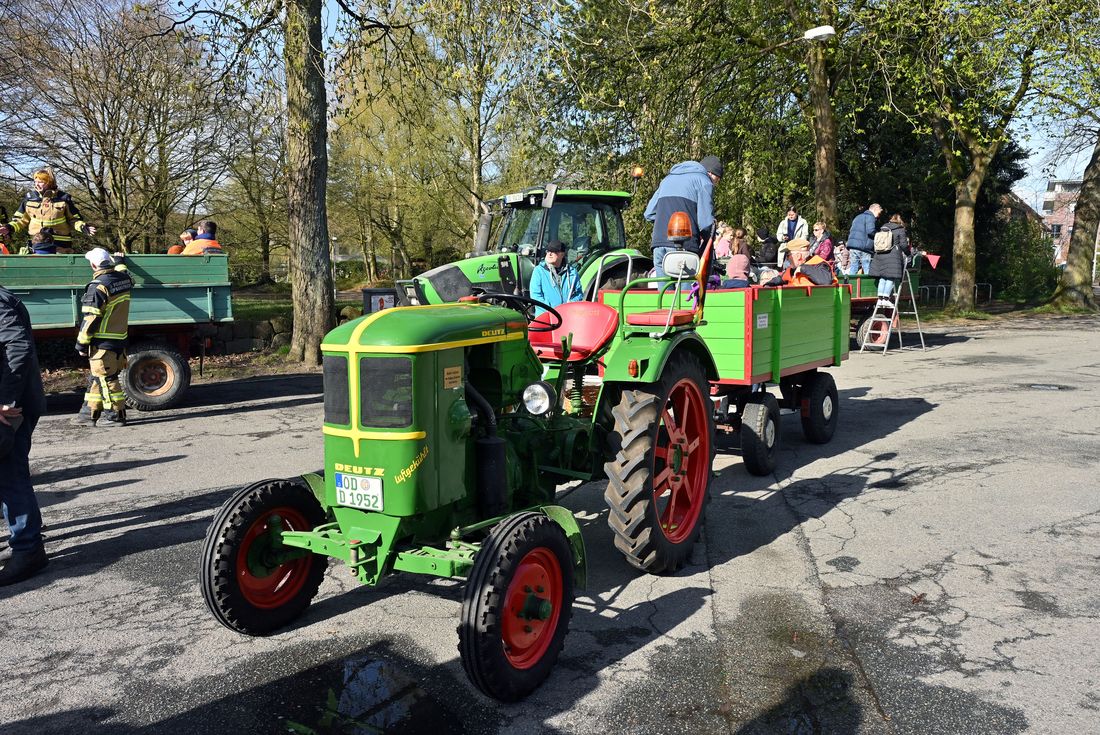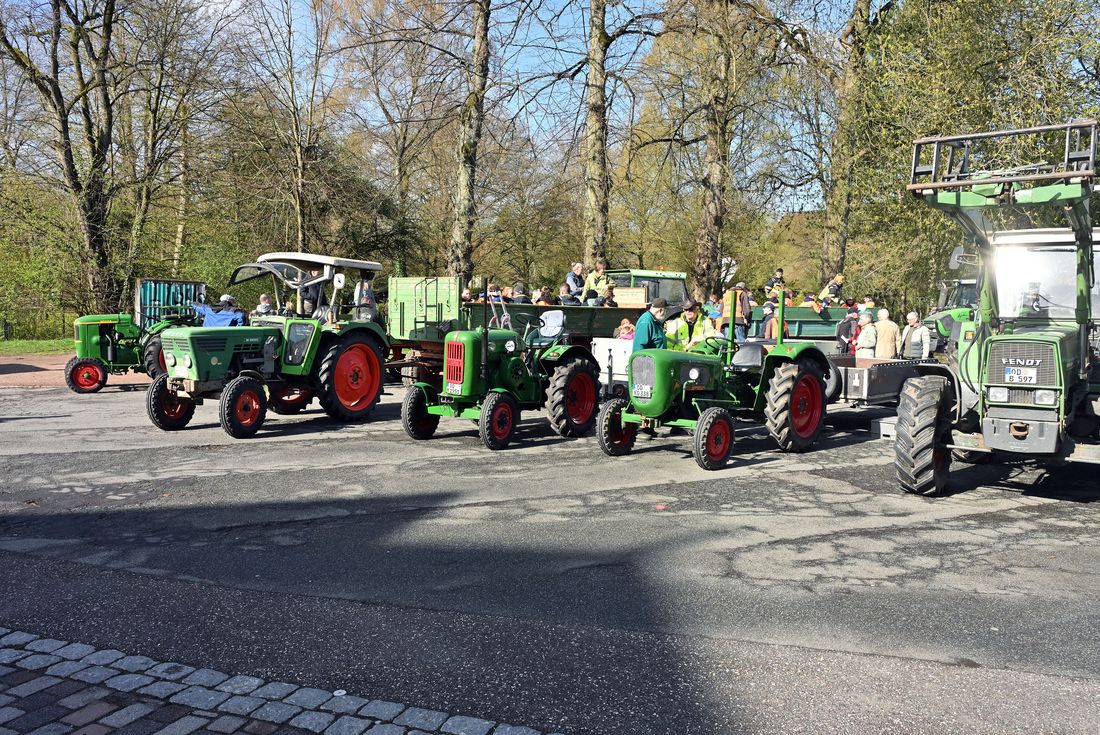 Mehr als einhundert Personen, darunter auch die Bargteheider Bürgermeisterin Gabriele Hettwer, fanden sich am Markt ein, um sich auf bereitstehende Anhänger von Traktoren zu setzen und zu verschiedenen Sammelgebieten in Bargteheide zu fahren.