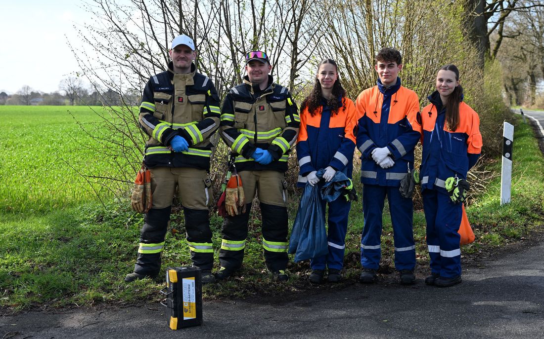 Die Jungs und Mädchen der Jugendfeuerwehr Bargteheide sammelten dabei u.a. an der Straße „Tannengrund“ und am Fischbeker Weg im Straßenbegleitgrün den achtlos weggeworfenen Müll. Leere Schnapsflaschen, Papier, Reifen und auch eine alte Fahrzeugbatterie waren Fundstücke.