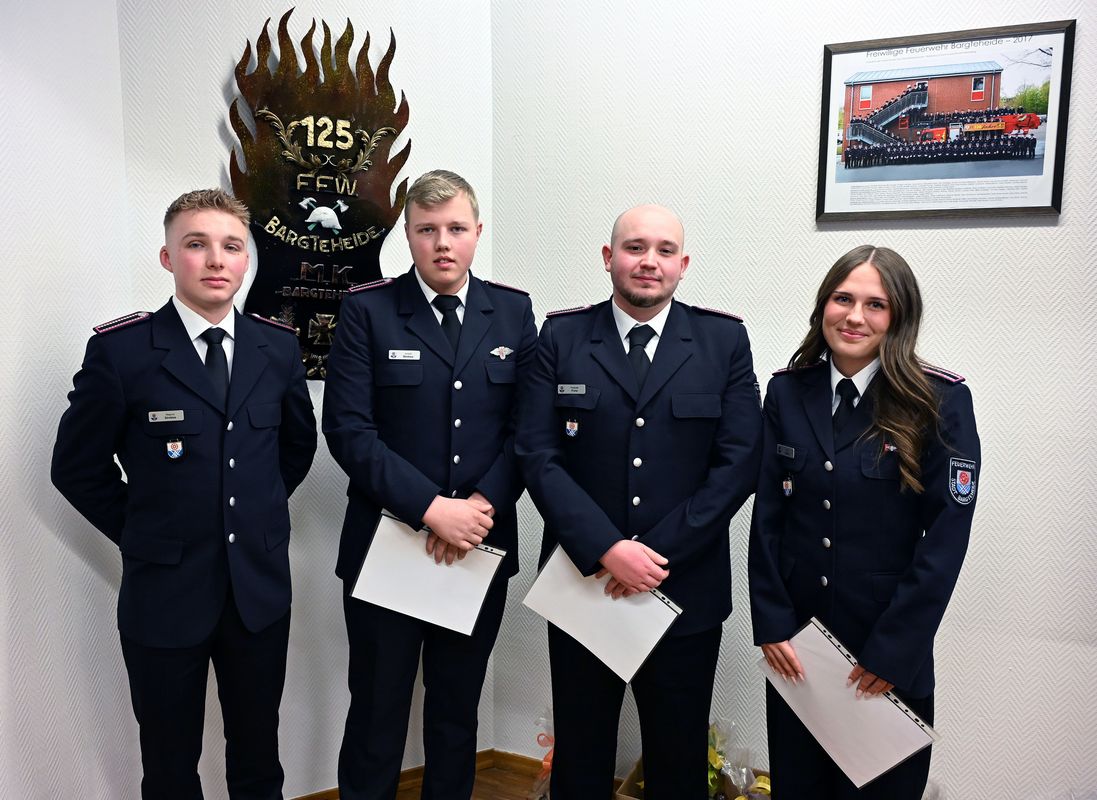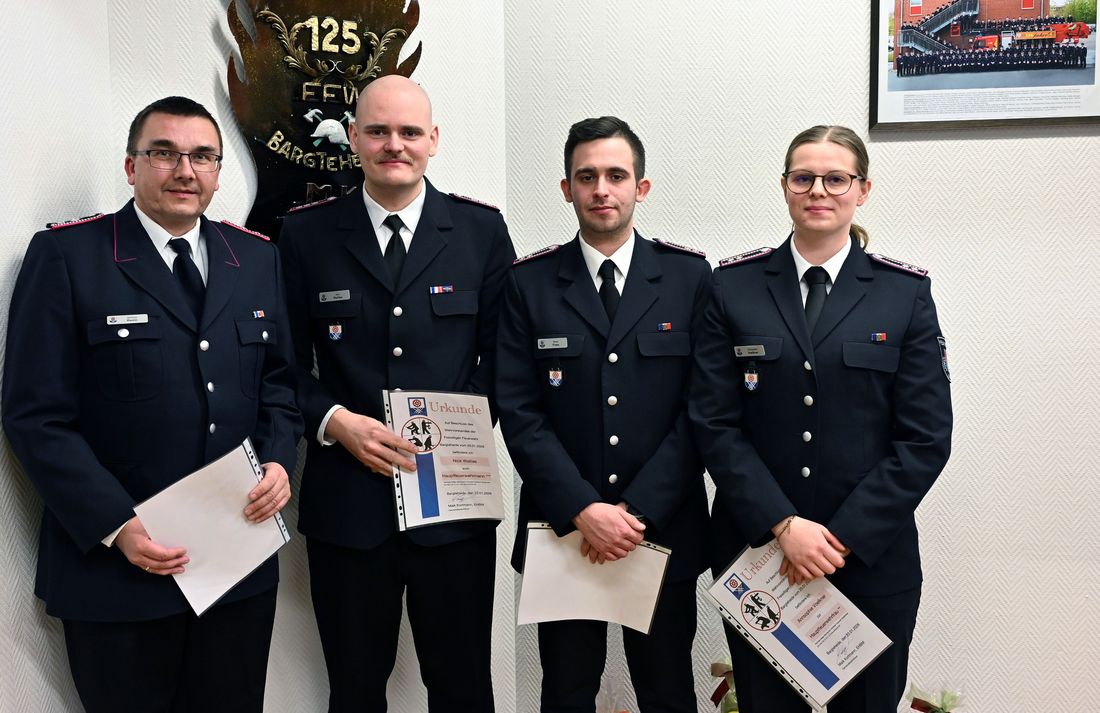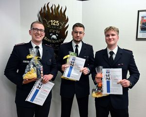 Befördert wurden zur Feuerwehrfrau Joy Harms, zu Feuerwehrmännern Pasquale Franz und Jendrik Strekies.