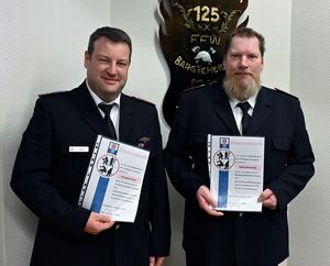 Christoph Fischer und Martin Meiswinkel erhielten das Abzeichen für 30 Jahre Feuerwehrmitgliedschaft.