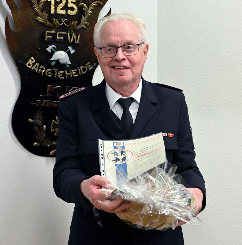 Besondere Ehre für Uwe Brusdeilins und Peter Maschmann. Uwe ist nun 50 Jahre, Peter 60 Jahre in der Feuerwehr Mitglied.