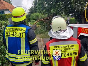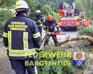 Die Kleinshansdorfer Kameradinnen und Kameraden sperrten bereits ab und hatten eine Kettensäge bereit.